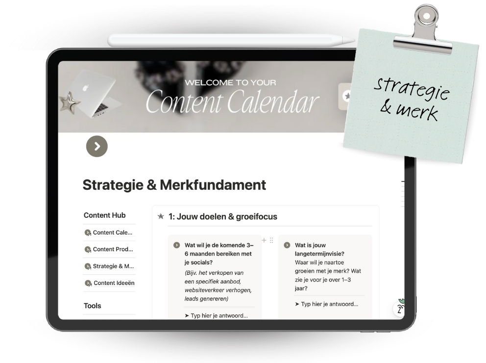 Met dit template kun je jouw contentstrategie overzichtelijk plannen, je ideeën veilig opslaan, en sneller keuzes maken. Zo hou je meer tijd over voor het maken van sterke content die resultaat oplevert.