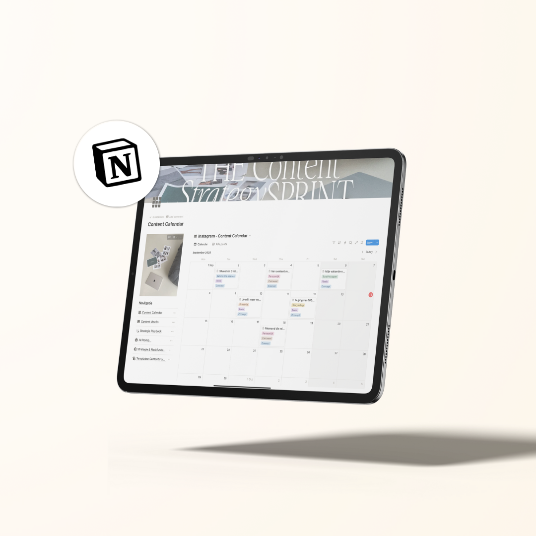 Bij jouw deelname ontvang je ook mijn persoonlijke go-to Notion Content Calendar & Strategie Werkblad.