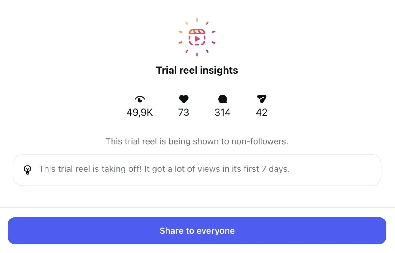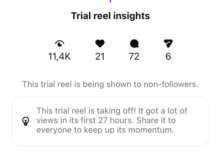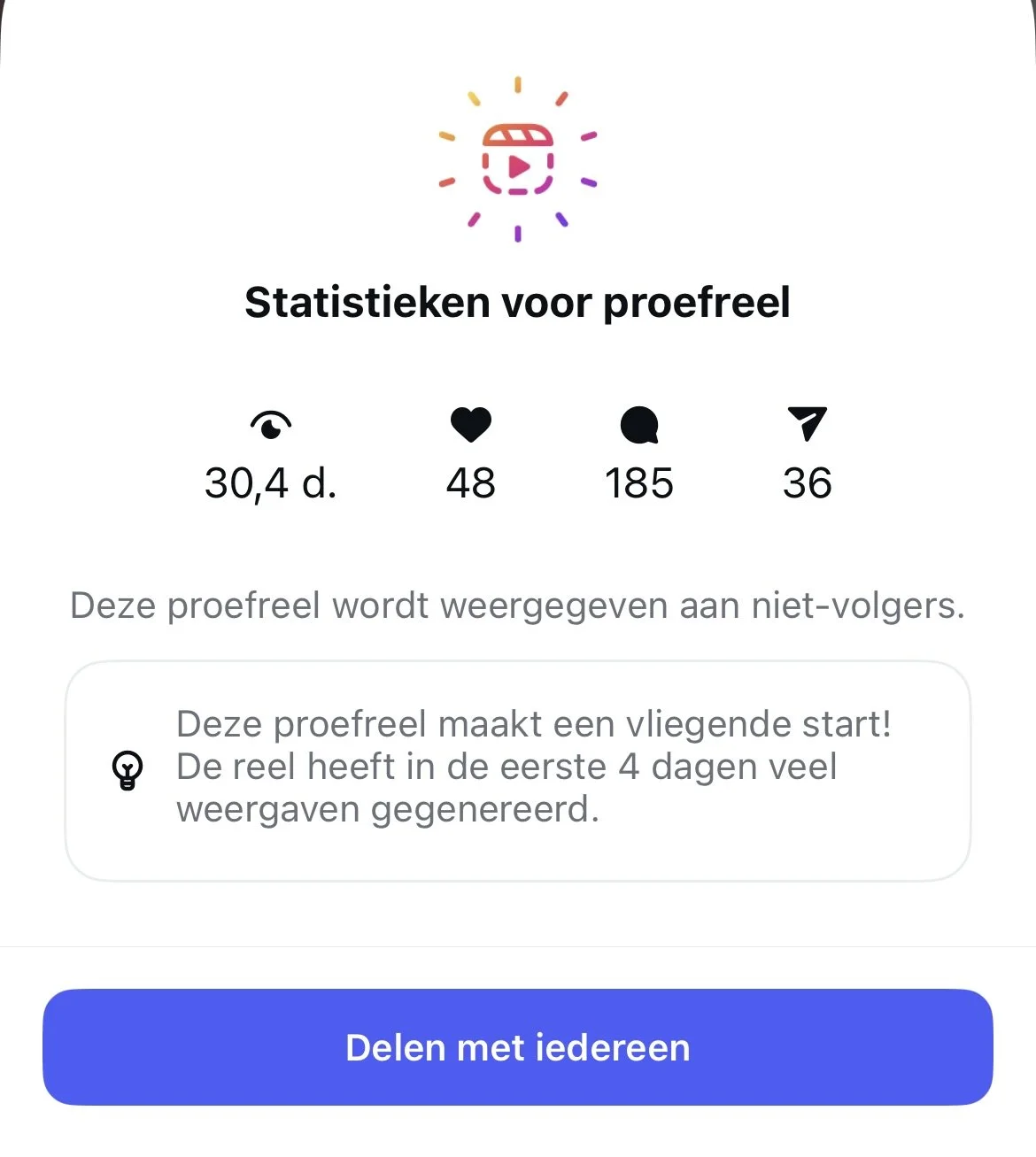 Veel gebruikers zien al bij de eerste Trial Reel verschil in bereik of interactie. Maar zoals bij alles: consistentie is key en het is belangrijk om te testen.